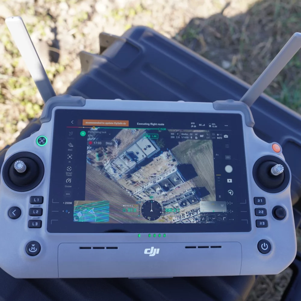 Zaplanowanie i uruchomienie misji jest tak samo szybkie jak w poprzedniku – Mavic 3 Enterprise lecz większy ekran na pewno pomaga w precyzji wskazywania i wyborze parametrów. Zastosowany szybszy procesor w kontrolerze również pozwala na płynniejsze działanie aplikacji DJI Pilot 2.