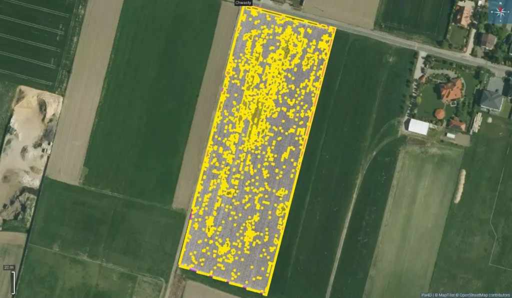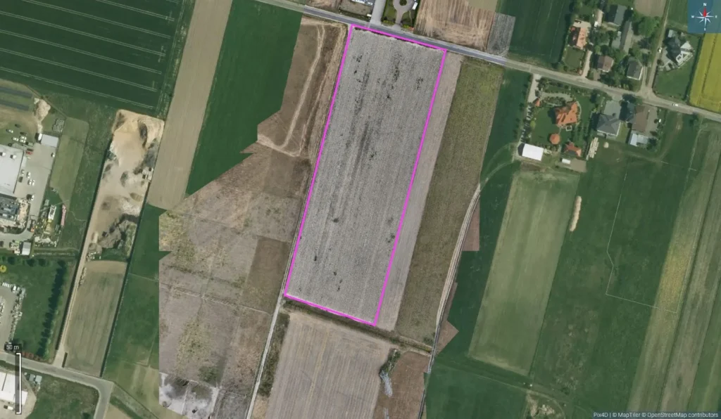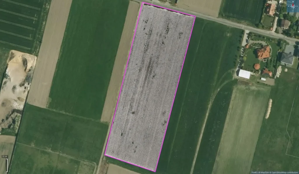 Na tym przykładzie wykorzystane zostały dane z drona Matrice 4 Enterprise. Następnie w programie Pix4Dfields przygotowano ortomozaikę całego terenu.